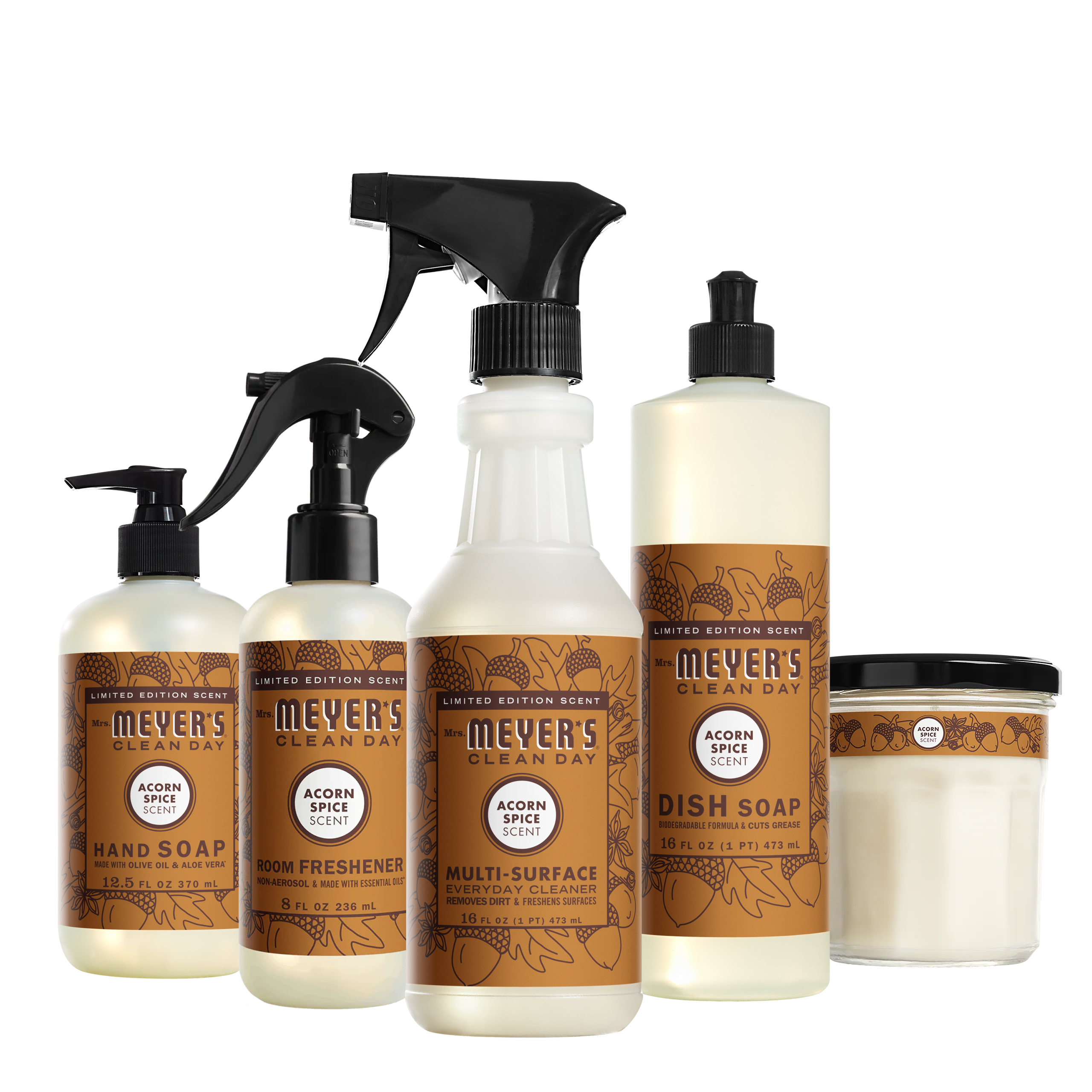 - Includes Hand Soap. Dish Soap. Multi-Surface Everyday Cleaner. Room Freshener. and Large Soy Candle