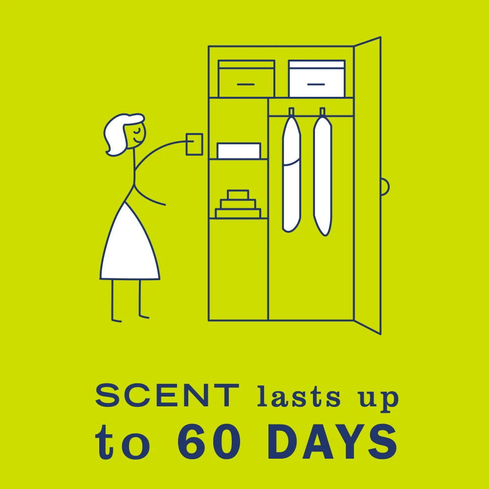 - Provides 60 days of long-lasting scent anywhere you want to freshen: cars. lockers. closets and more!