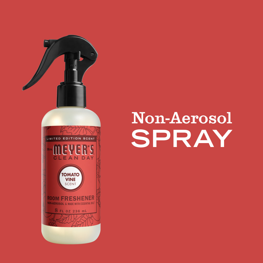 - Mrs. Meyer’s Clean Day Tomato Vine air freshener spray is made with essential oils and other thoughtfully chosen ingredients. and gives your home instant freshening between cleaning days